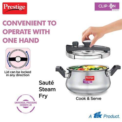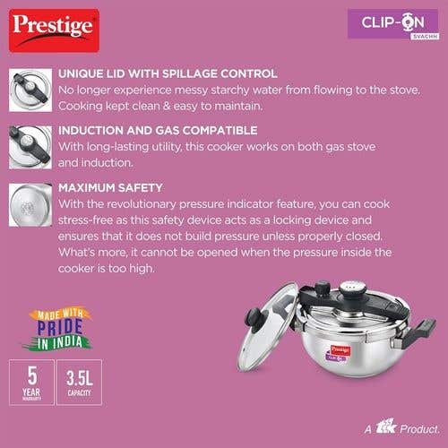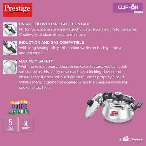 Prestige Clip-on Svachh Stainless Steel Spillage Control Pressure Cooker, (Silver) |