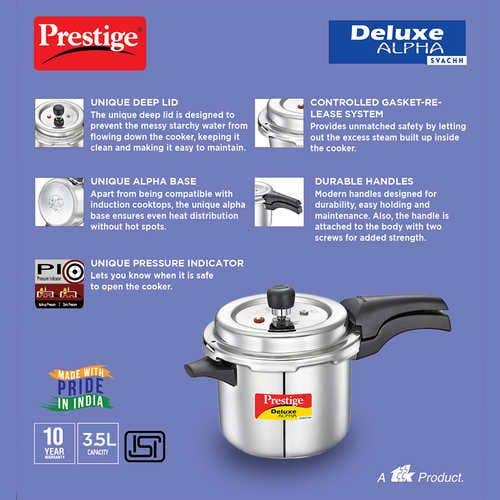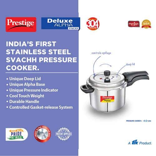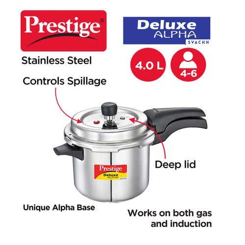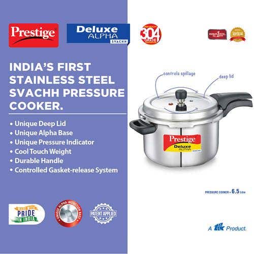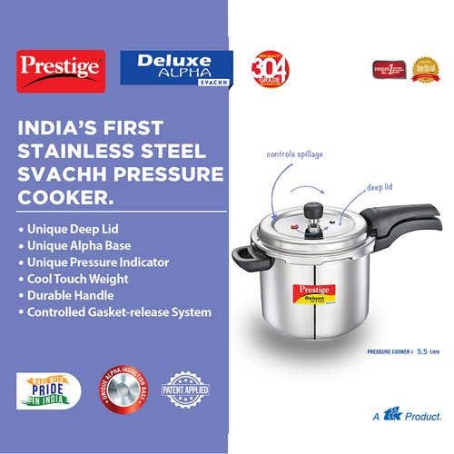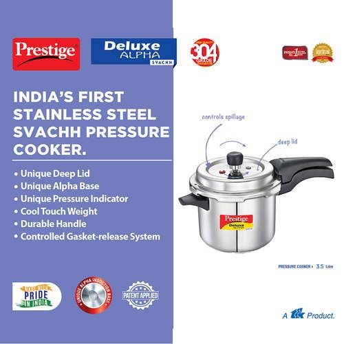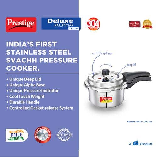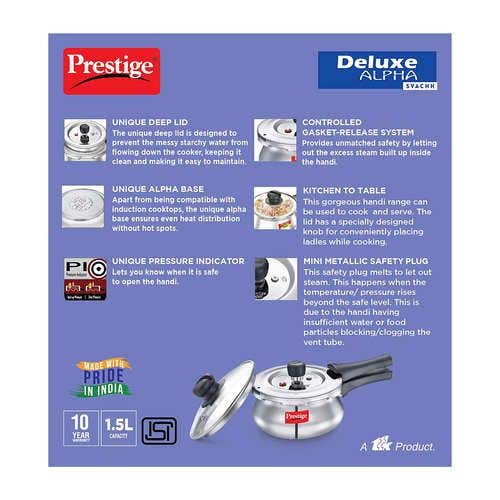 Prestige Deluxe Alpha Svachh Stainless Steel Spillage Control Handi Pressure Cooker with Glass Lid, 1.5 L (Silver) |