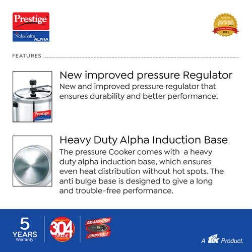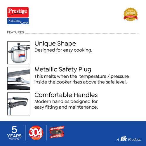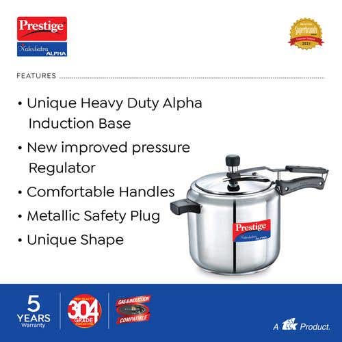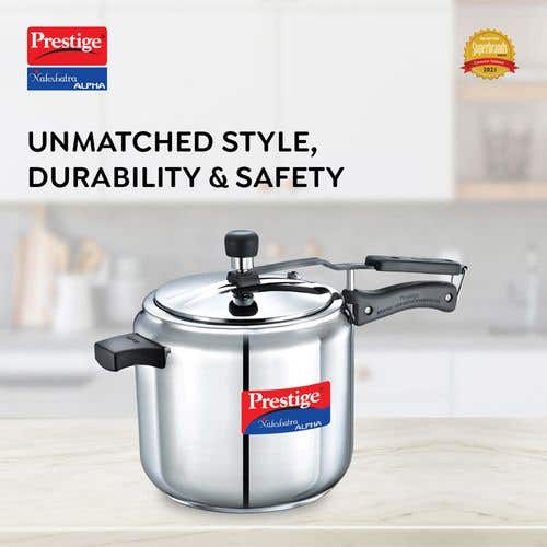 Prestige Nakshatra Alpha Stainless Steel Gas and Induction Compatible Pressure Cooker, Silver |