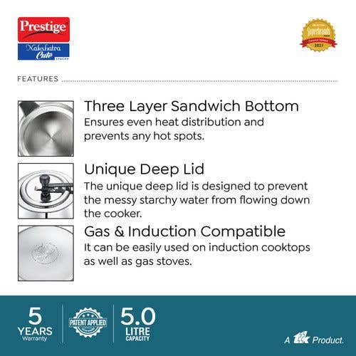 Prestige Nakshatra Cute Svachh Stainless Steel Spillage Control Pressure Cooker (Silver) |