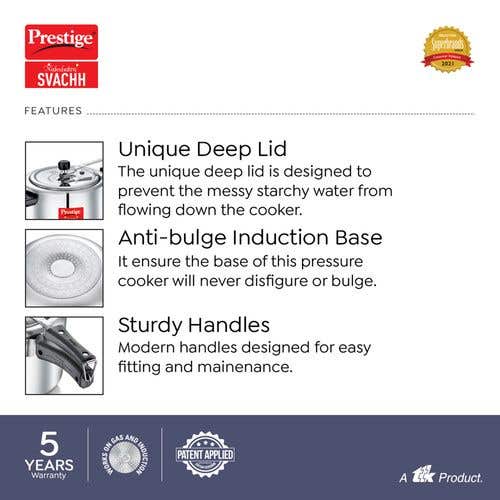 Prestige Nakshatra Plus Svachh Aluminium Inner Lid Pressure Cooker with Unique Deep Lid for Spillage Control