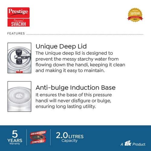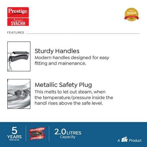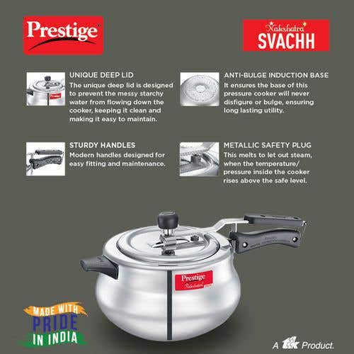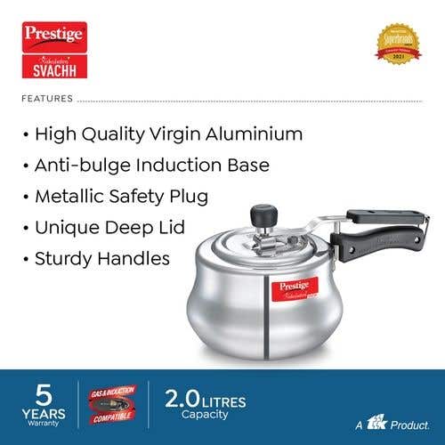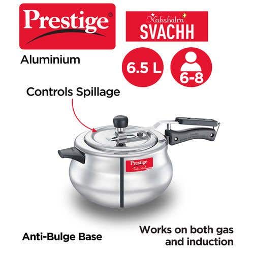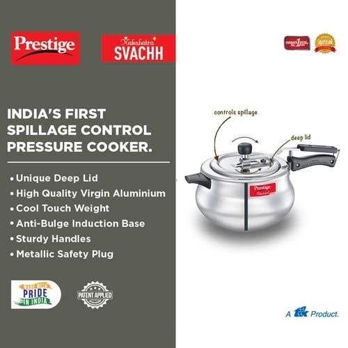 Prestige Nakshatra Plus Svachh Aluminium Spillage Control Handi Pressure Cooker (Silver) |