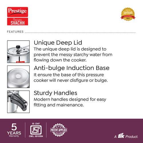 Prestige Nakshatra Svachh Aluminium Inner Lid Pressure Cooker with Unique Deep Lid for Spillage Control, 8 L |