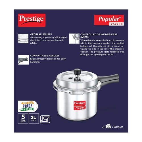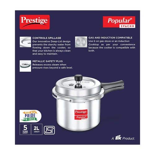 Prestige Popular Plus Svachh Virgin Aluminium Gas and Induction Compatible Pressure Cooker, (Silver) |