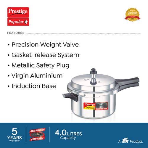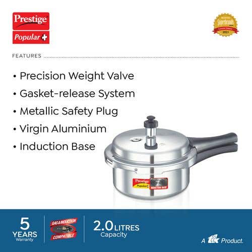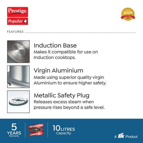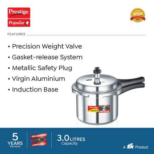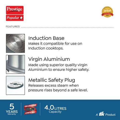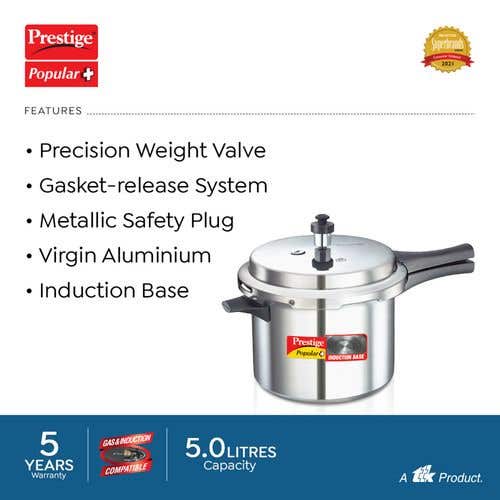 Prestige Popular Plus Virgin Aluminium Gas and Induction Compatible Pressure Cooker, (Silver) |