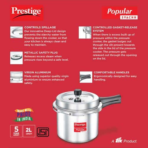 Prestige Popular Svachh Virgin Aluminium Gas and Induction Compatible Pressure Cooker, (Silver) |