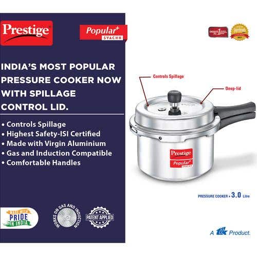 Prestige Popular Svachh Virgin Aluminium Spillage Control Pressure Cooker (Silver