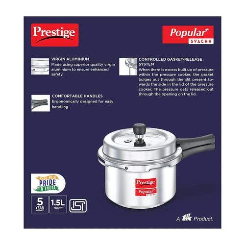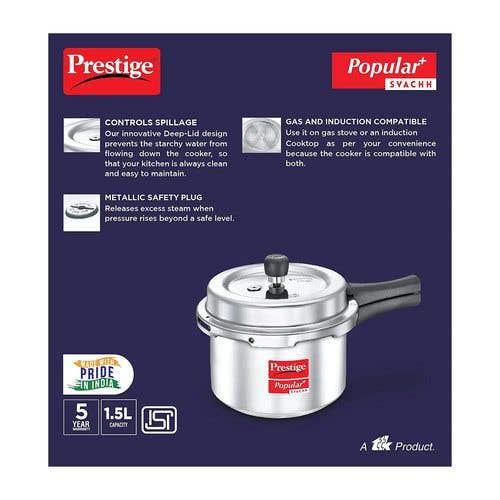 Prestige Popular Plus Svachh Virgin Aluminium Spillage Control Pressure Cooker (Silver)