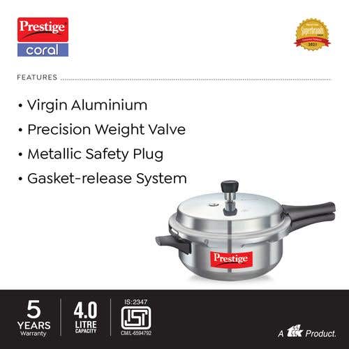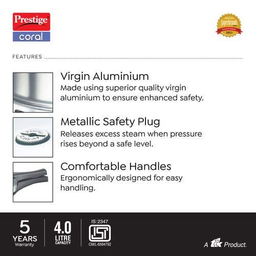 Prestige Popular Virgin Aluminium Pressure Cooker, (Silver) |
