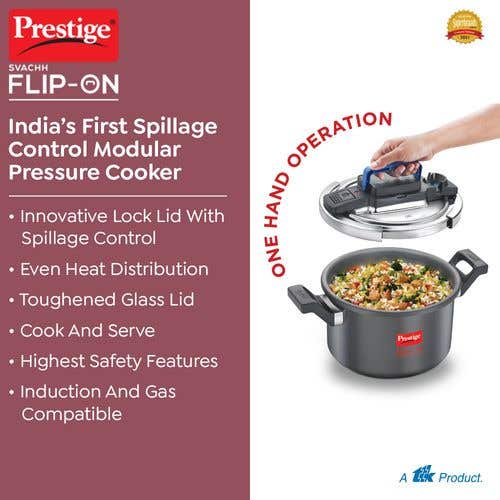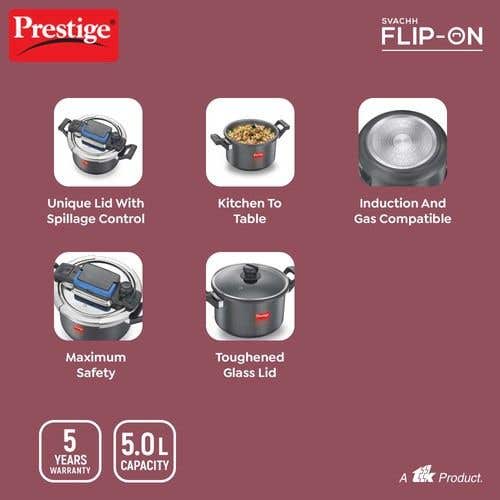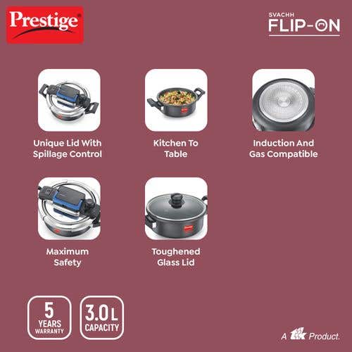 Prestige Svachh Flip-on Hard Anodised Gas and Induction Compatible Pressure Cooker with Glass Lid, (Black) |