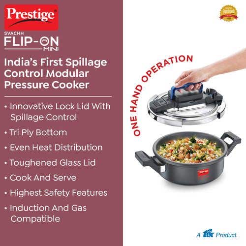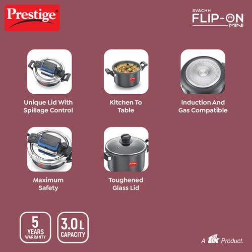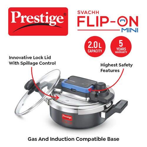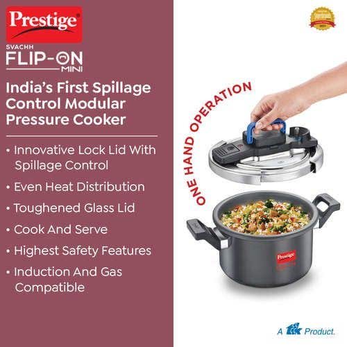 Prestige Svachh Flip-on Mini Hard Anodised Spillage Control Pressure Cooker with Glass Lid, (Black) |