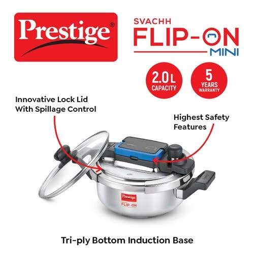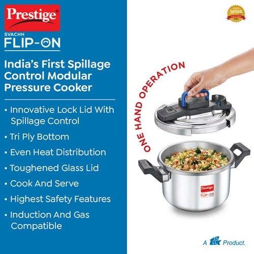 Prestige Svachh Flip-on Stainless Steel Spillage Control Pressure Cooker with Glass Lid, (Silver) |