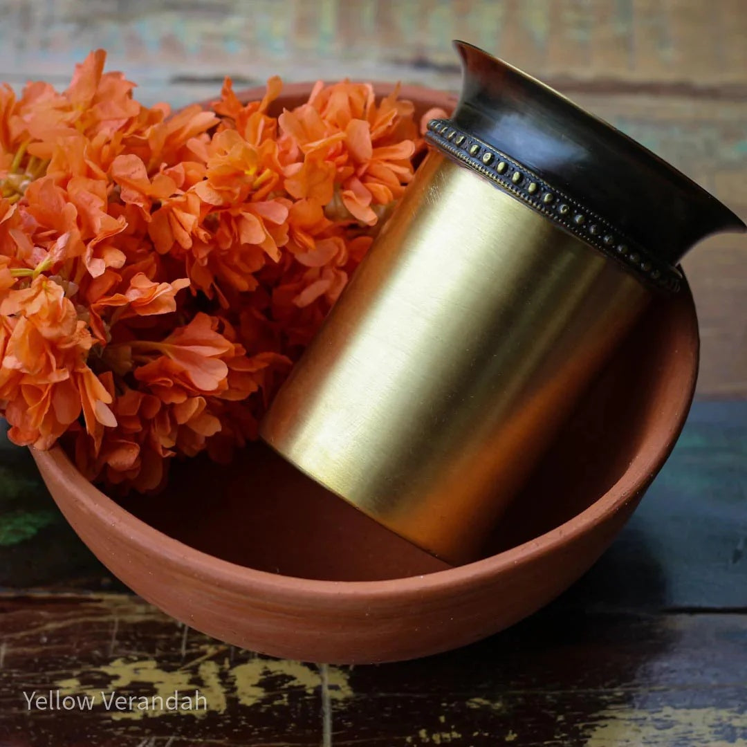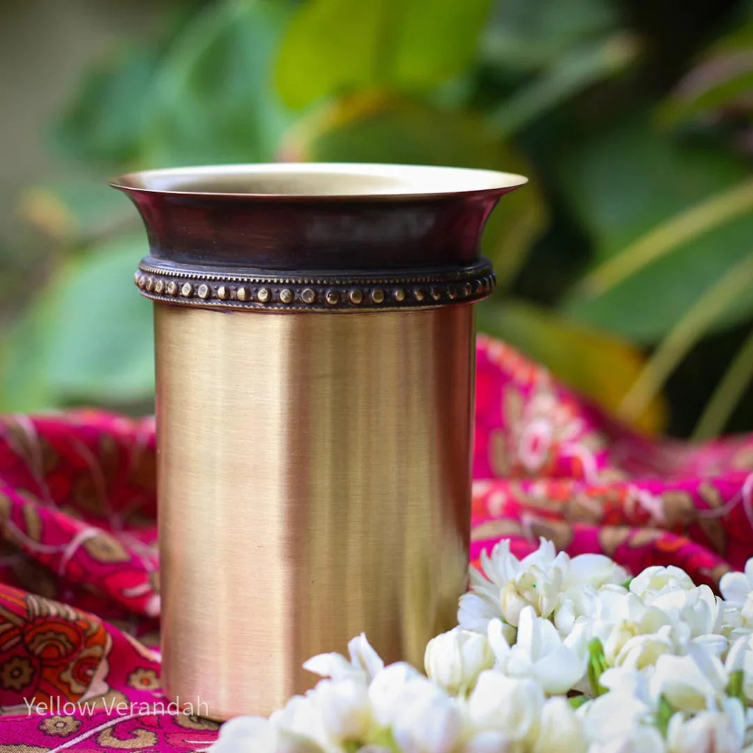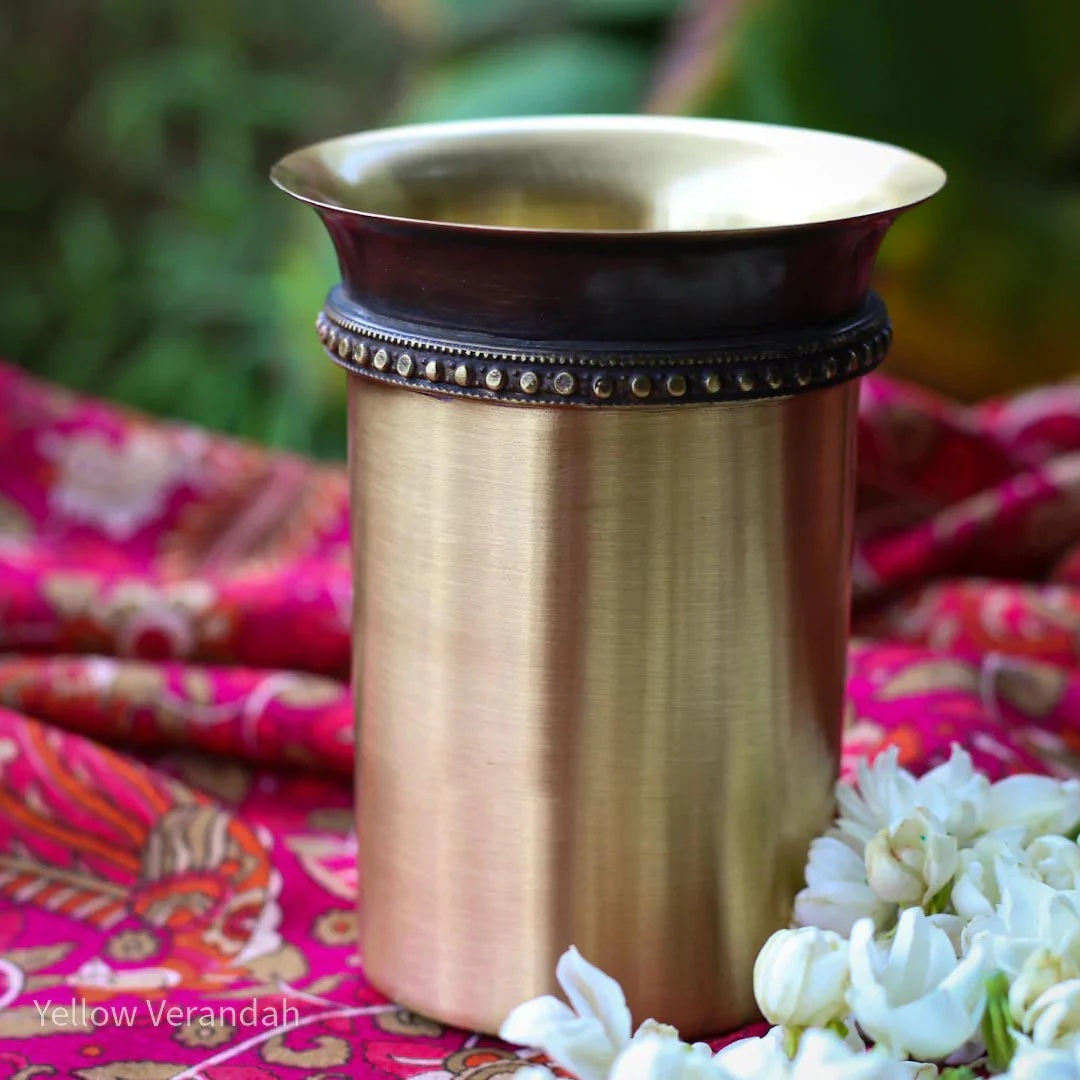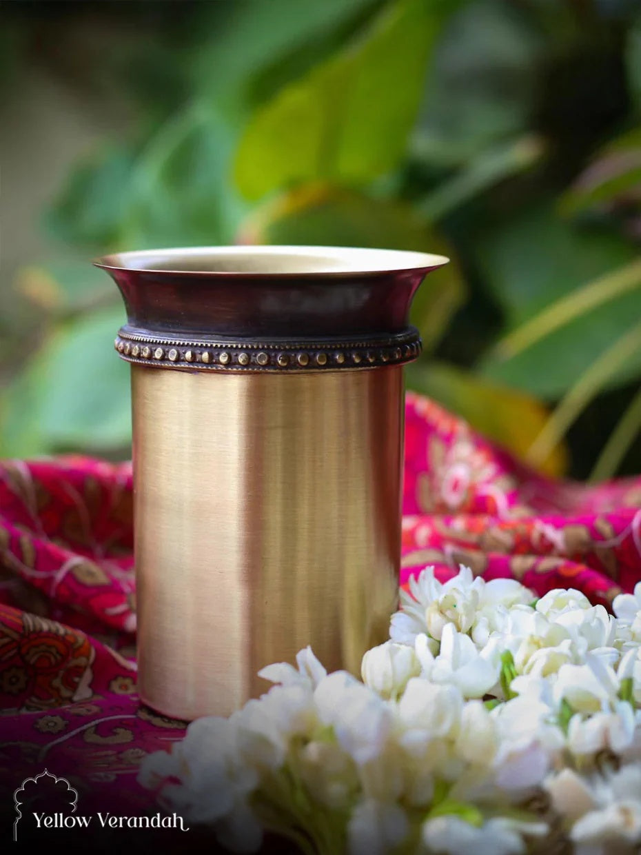 Inspired by radical beauty of Zamindari aristocracy - a larger than life living, these Pure Brass Sharbat Glasses are beyond utility. The shape and fine intricate crafting of the Moti Border will remind you our rich culinary & culture !!!
