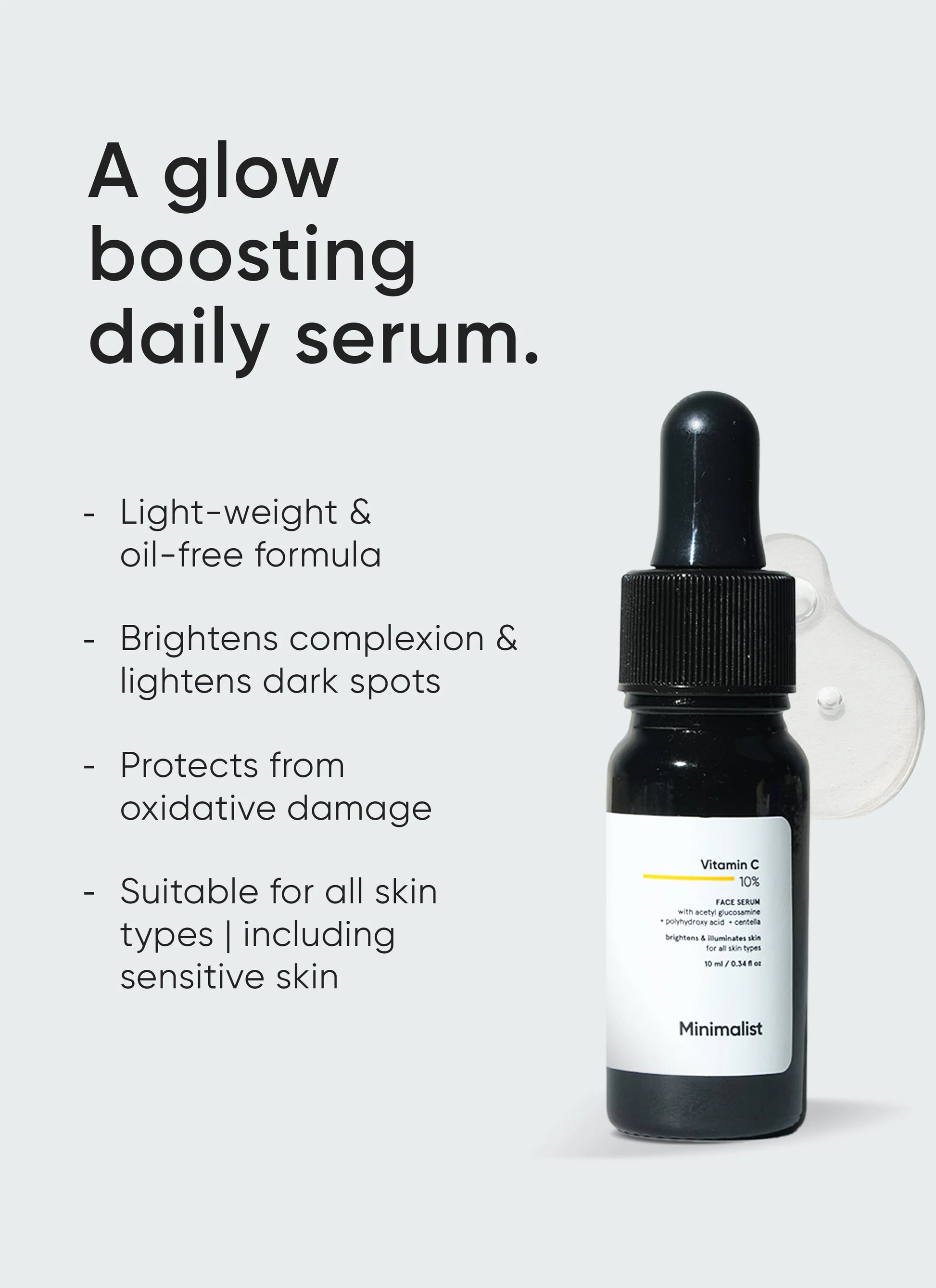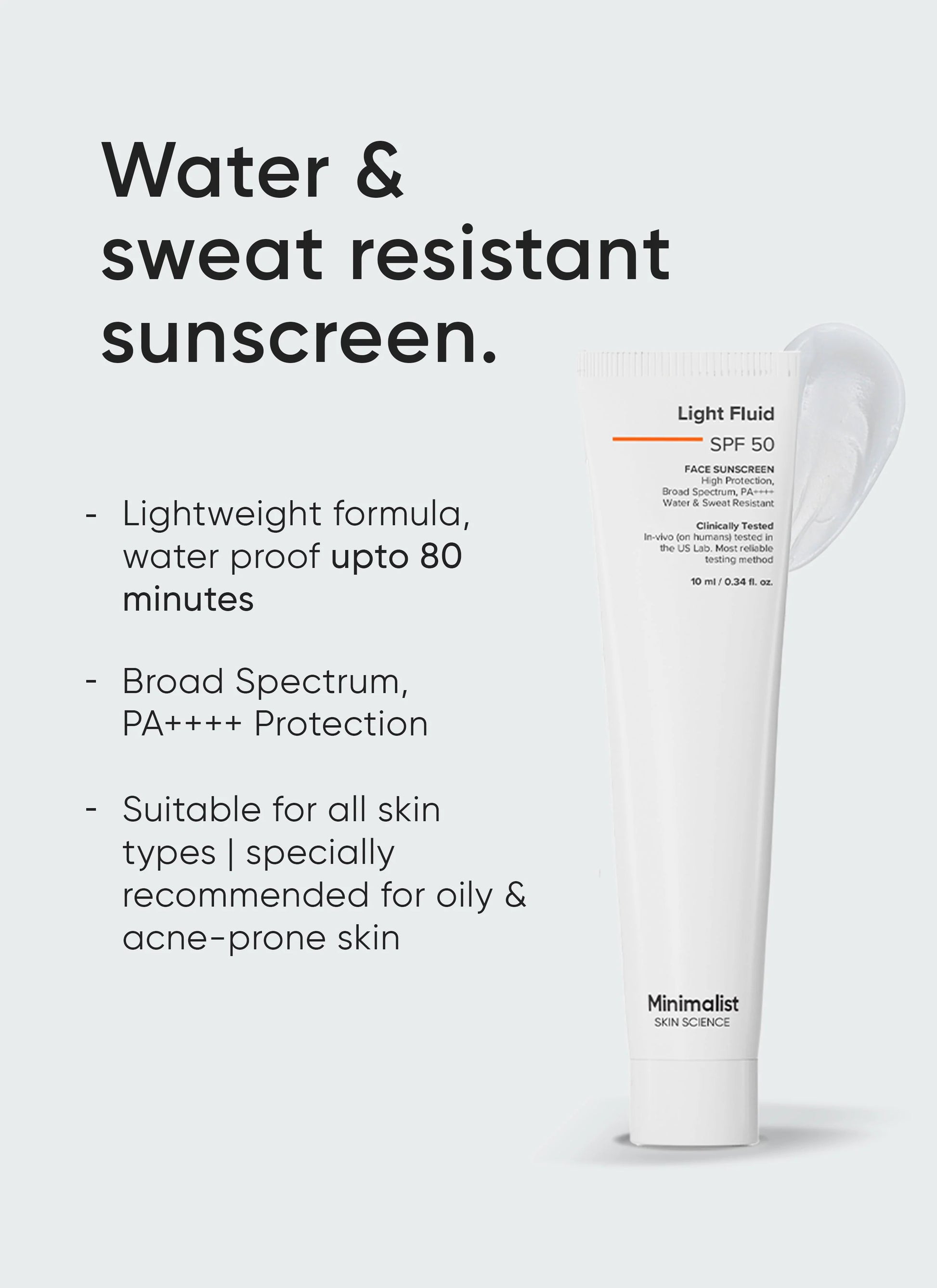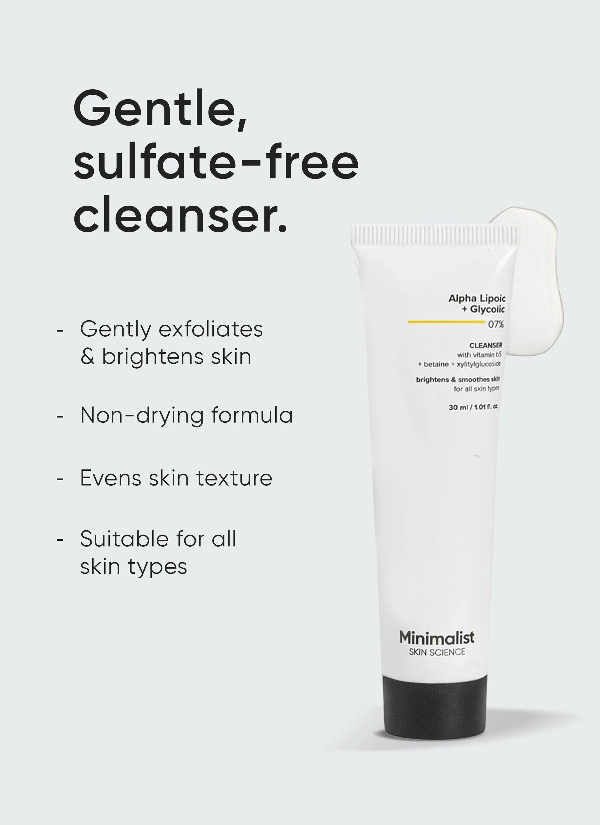 Introducing the Radiance Kit—your ultimate glow-boosting trio for healthy, radiant skin. This kit includes the Alpha Lipoic+Glycolic Cleanser, an everyday brightening cleanser with ALA to enhance skin tone and Glycolic Acid to exfoliate for a fresh, youthful look. Follow up with the Vitamin C Serum, packed with Vitamin C and Polyhydroxy Acid (PHA) to brighten sun-damaged, dull skin and fade dark spots. Complete your routine with the Light Fluid SPF 50, a lightweight, water-resistant sunscreen with advanced UV filters like Tinosorb M and Uvinul A Plus, offering broad-spectrum protection without a white cast. Glow, protect, and renew with every step!