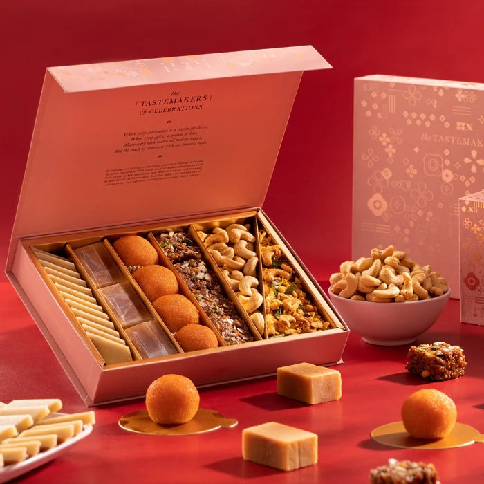 Celebrate every occasion with a festive gift box filled with an irresistible mix of traditional sweets, crunchy namkeen, and premium dry fruits.