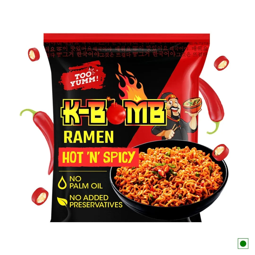 Too Yumm! K-Bomb Hot n Spicy | Ready to cook Instant Noodles | 100% Veg | Korean Noodles - 79g