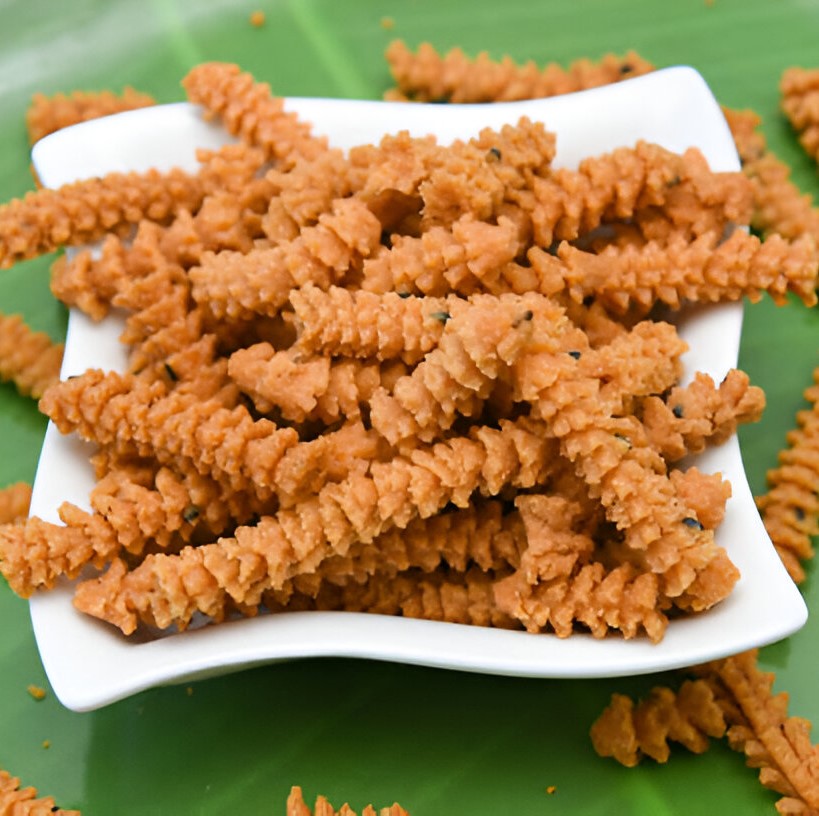Venna Murukulu is a classic South Indian snack made with rice flour, butter, and spices. Known for its crisp texture and rich, savory flavor, it’s a perfect treat for festive moments or everyday munching.
