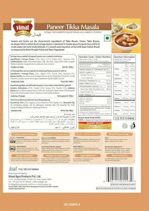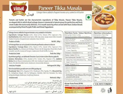 VIMAL Ready to Eat Delicious Paneer Tikka Masala Meal with No Added Preservative and Colours - 300g