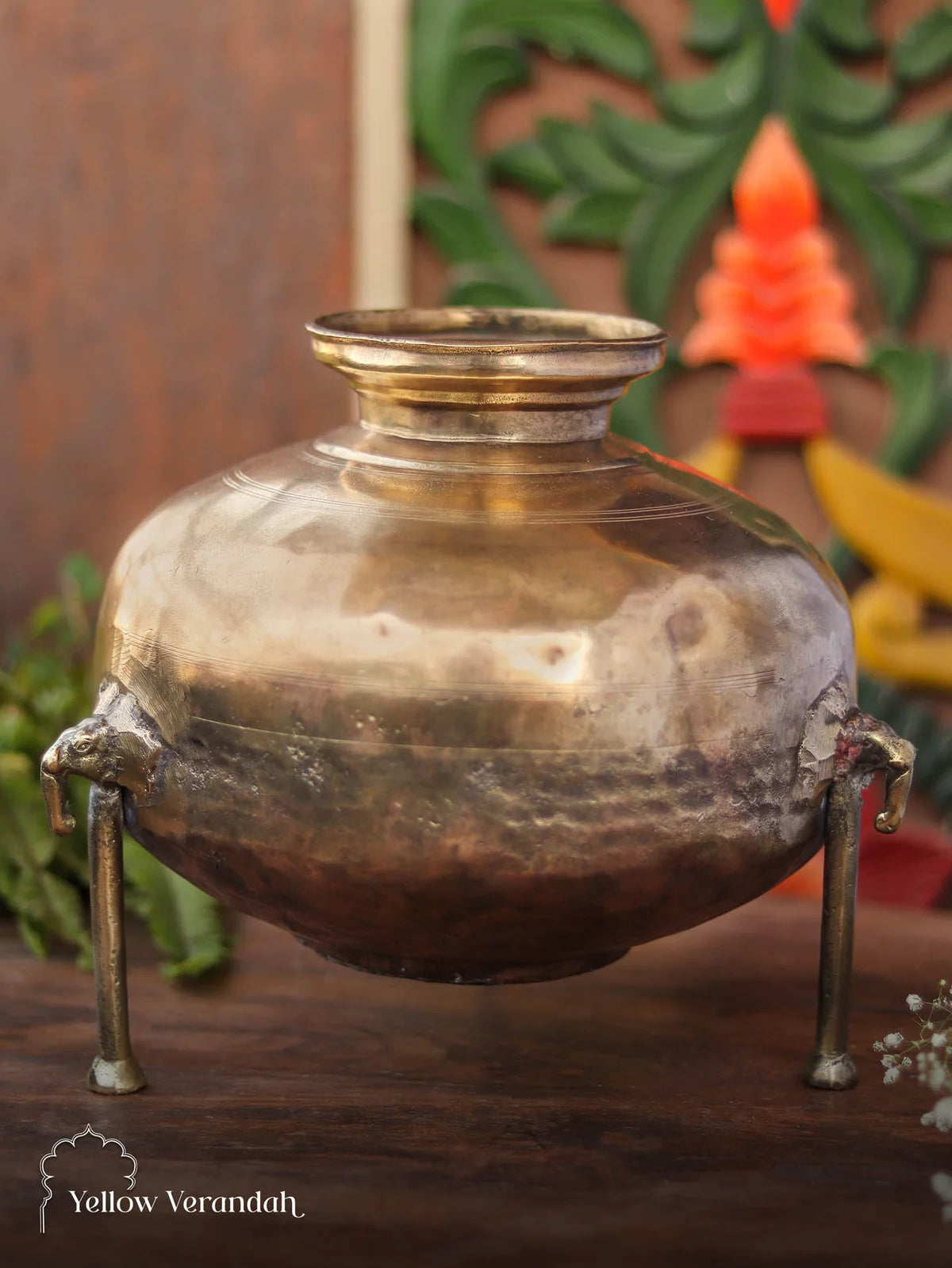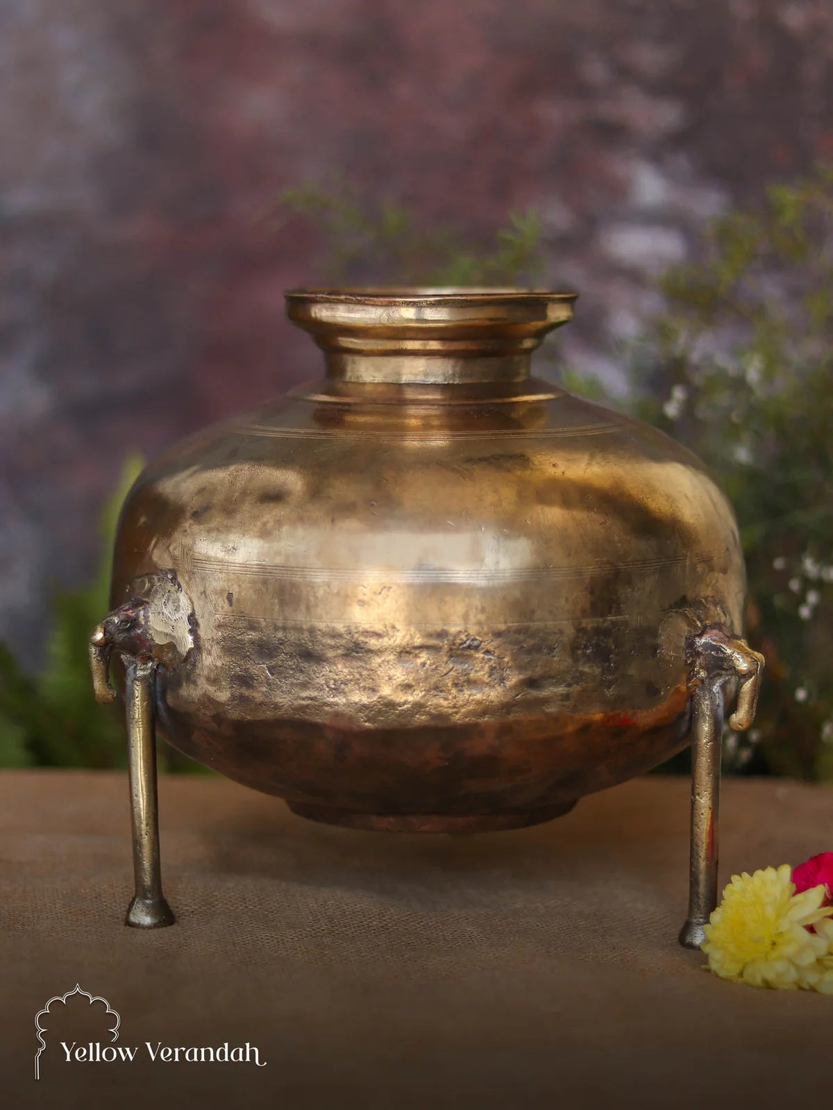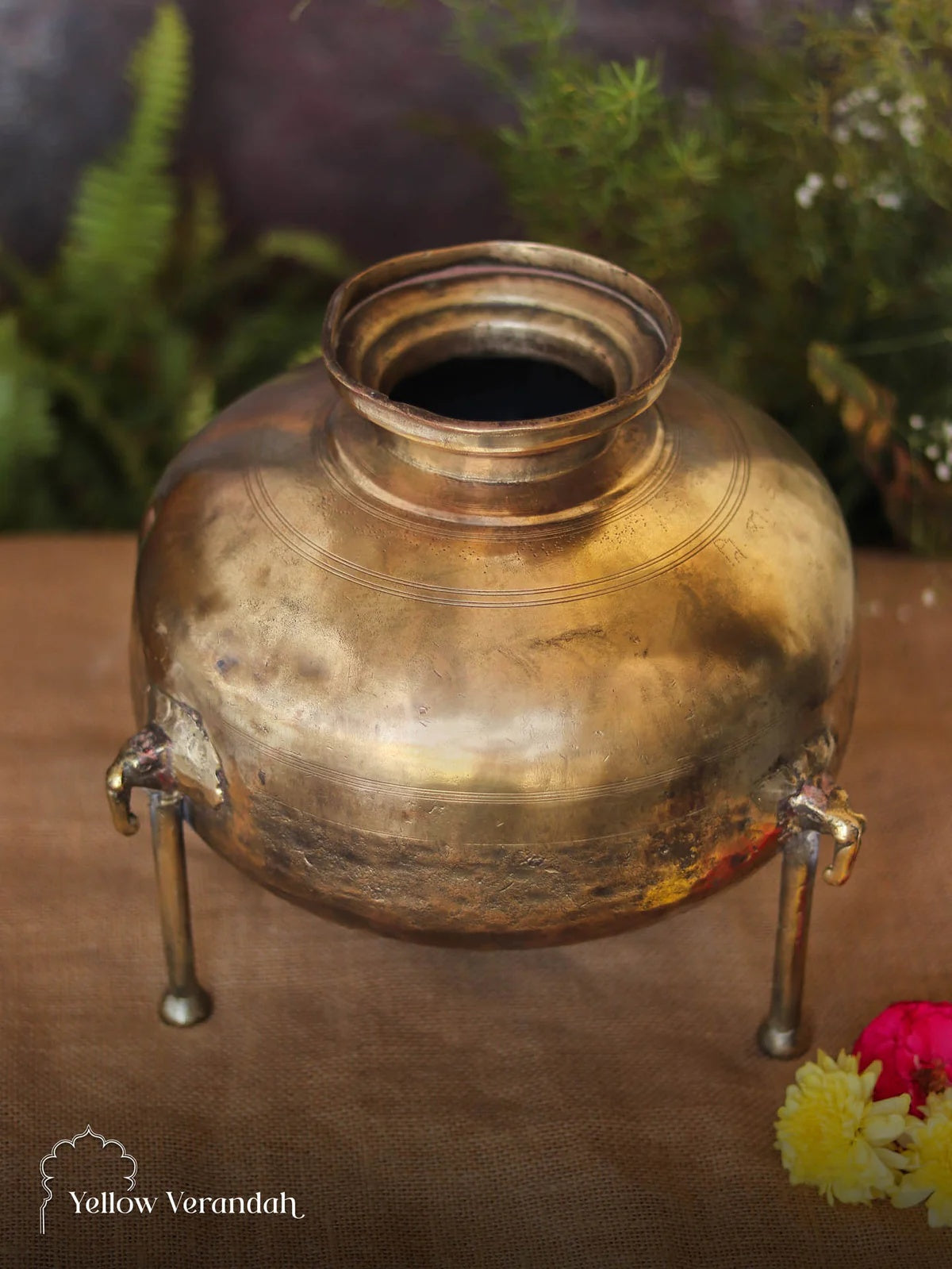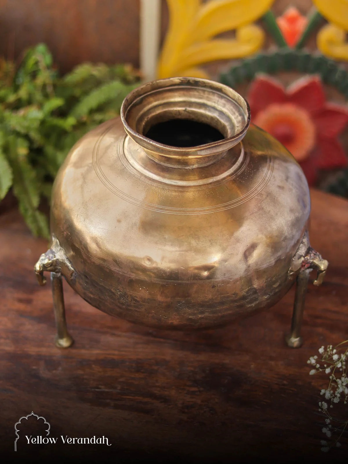 This handpicked Vintage Brass Bindi on tri stands is an old collection from 19C Rajasthani Royal Colonial era - a legacy from Haveli culinary & culture.