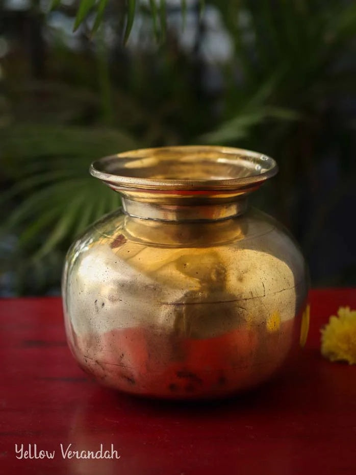 This handpicked Vintage Brass Pot is an old collection from 19C Rajasthani Royal Colonial era - a legacy from Haveli culinary & culture.Place this exquisite decor piece on your coffee table or console as a timeless collection or turn this into a beautiful flower Vase.