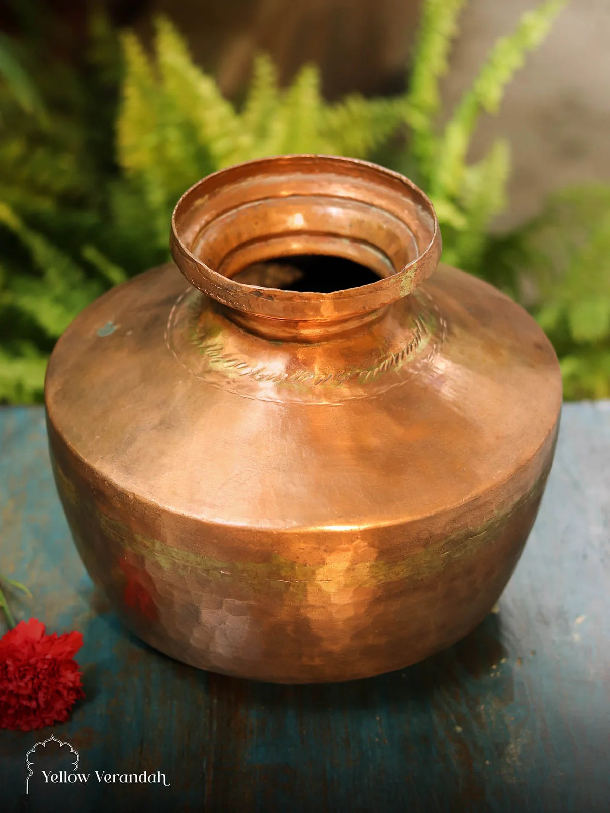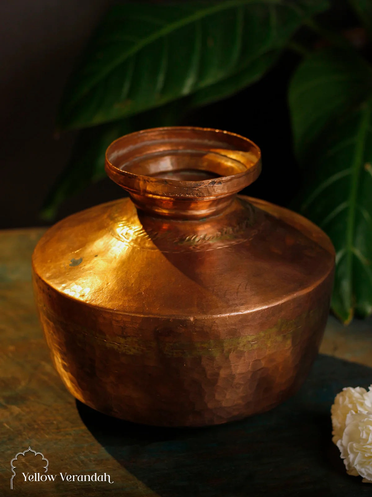This handpicked Vintage Copper Pot is an old collection from 19C Rajasthani Royal Colonial era - a legacy from Haveli culinary & culture.