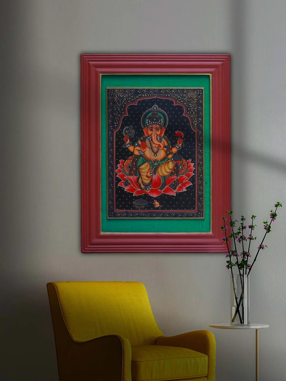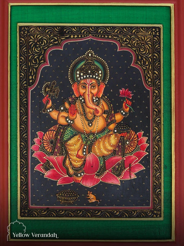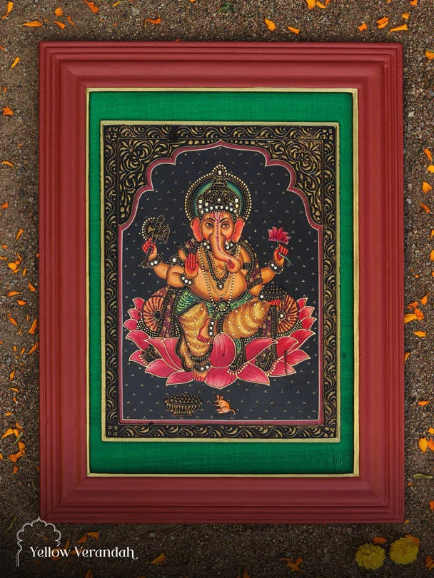 Ganesha on Wall Frame - a bespoke concept, our very talented miniature Pichwai artists from Nathdwara and we soulfully created.
