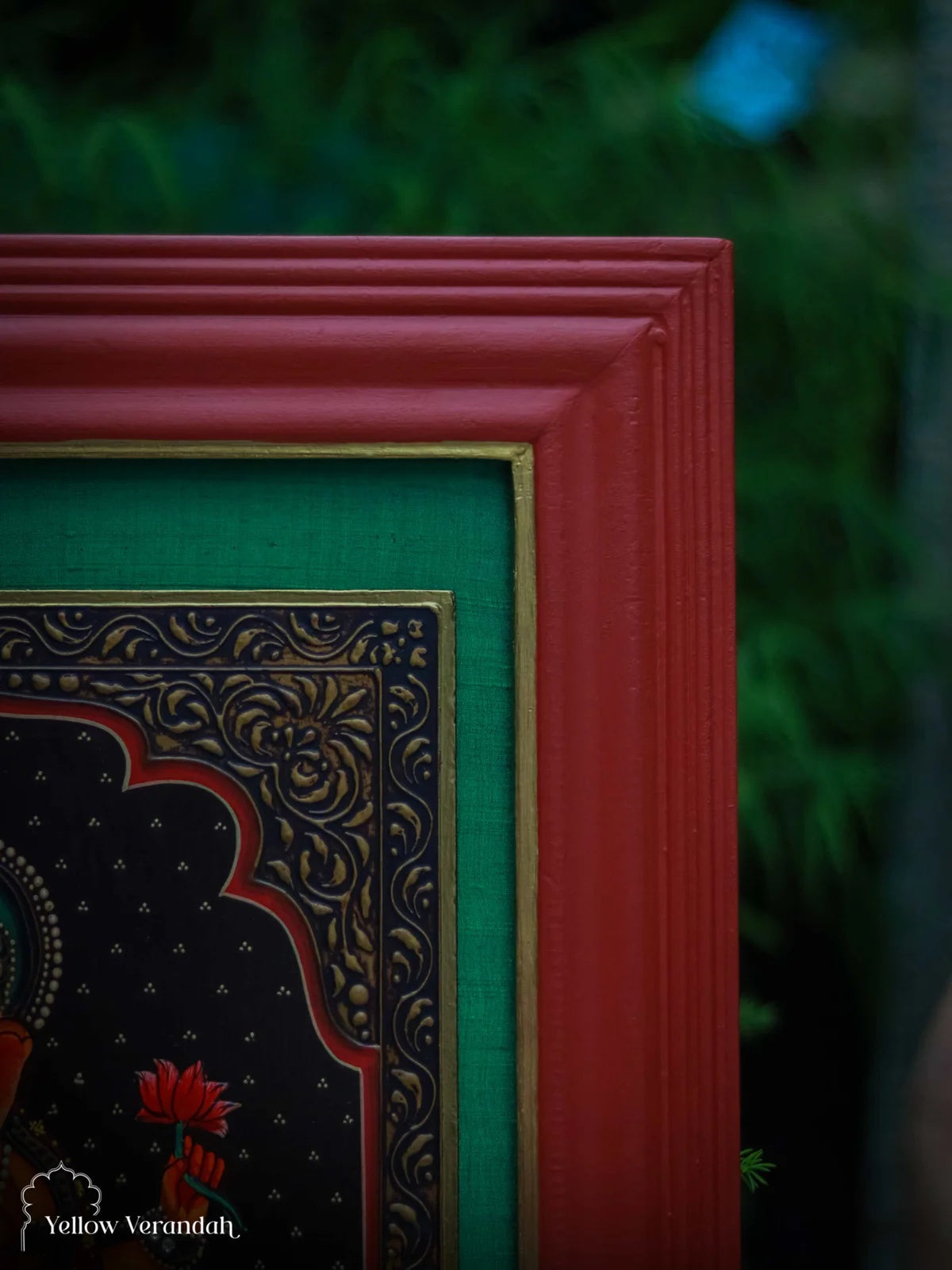 Our artists painted on MDF Cut-outs with fine intricacies and we curated on pure raw silk fabric and old refurbished wooden frame.