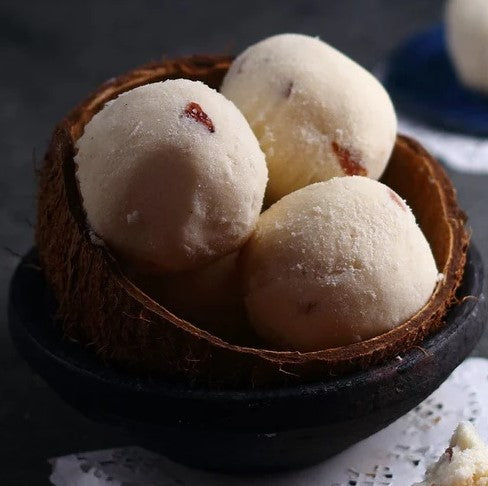 Our White Laddu blends the richness of condensed milk with the natural sweetness of coconut, rolled into delicate, snowy bites.