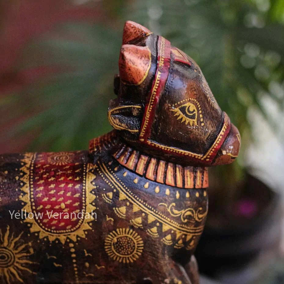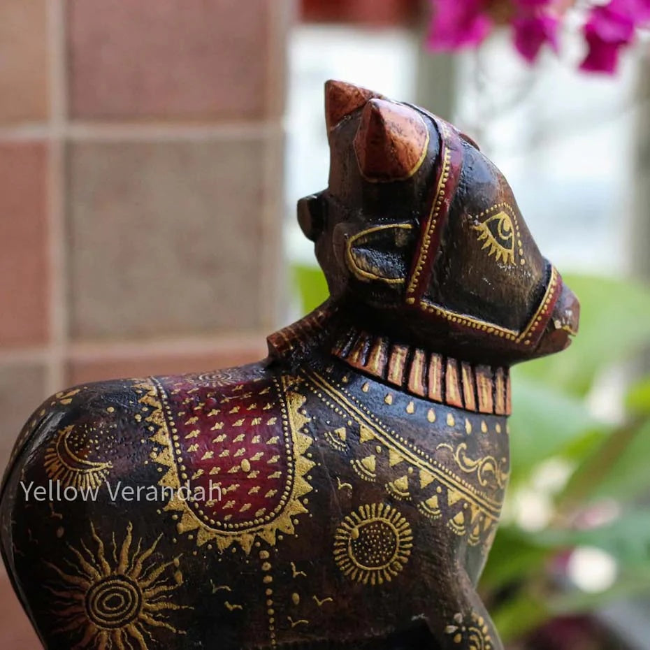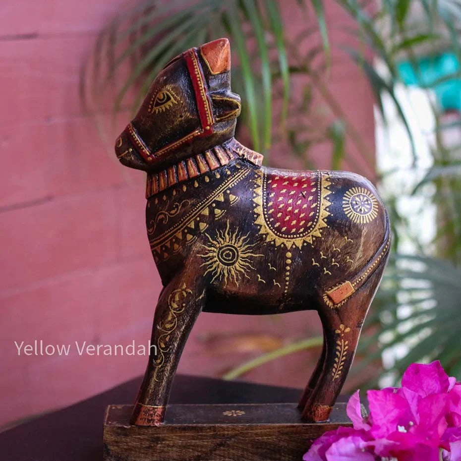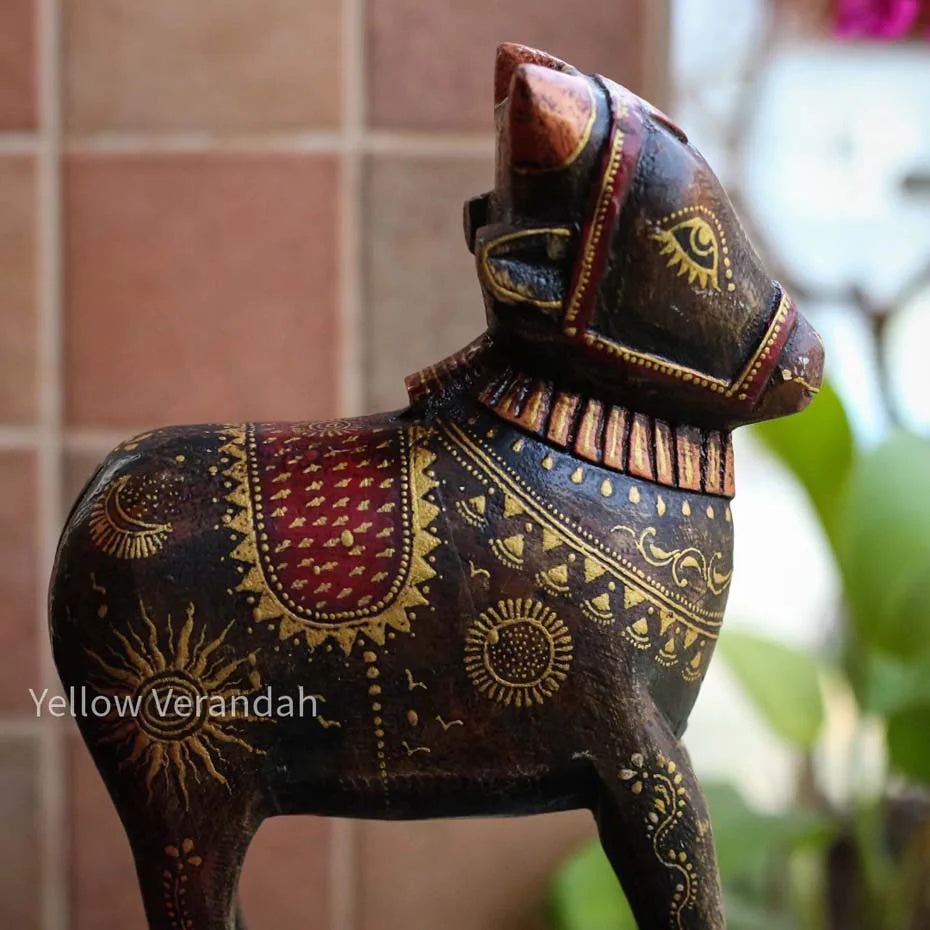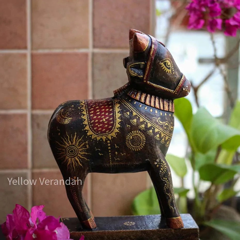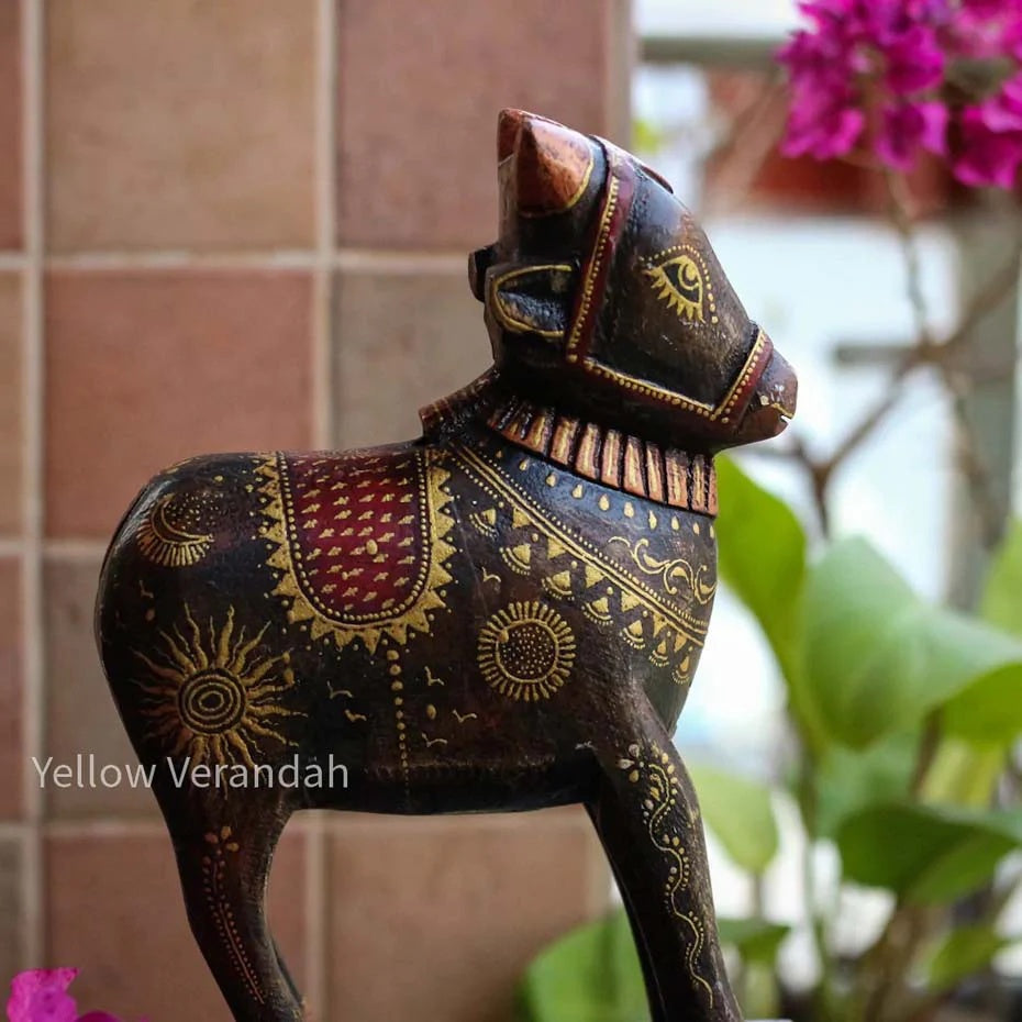Inspired from Gujrat's old architecture & wood carving, this shape of Nandi were used in old Havelis in Surat to decorate the courtyard pillars and main entrance.