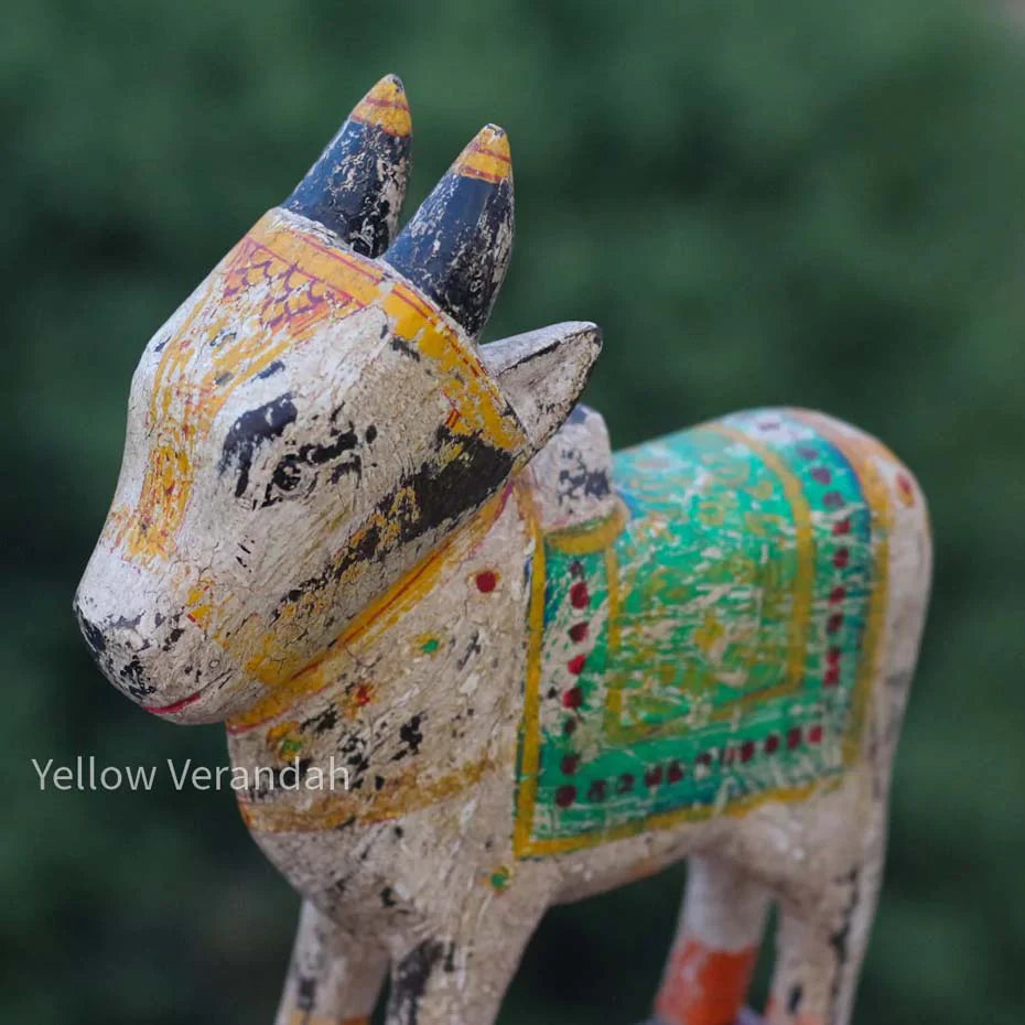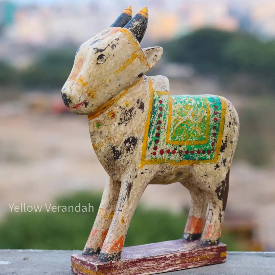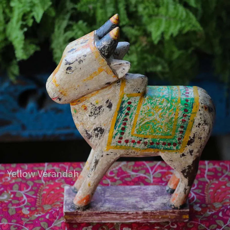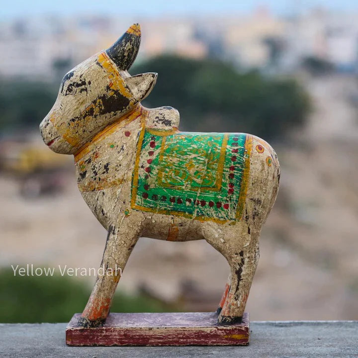 Handcrafted by local artisans, this beautiful Wooden Distressed Nandi embraces a cozy corner of your home.