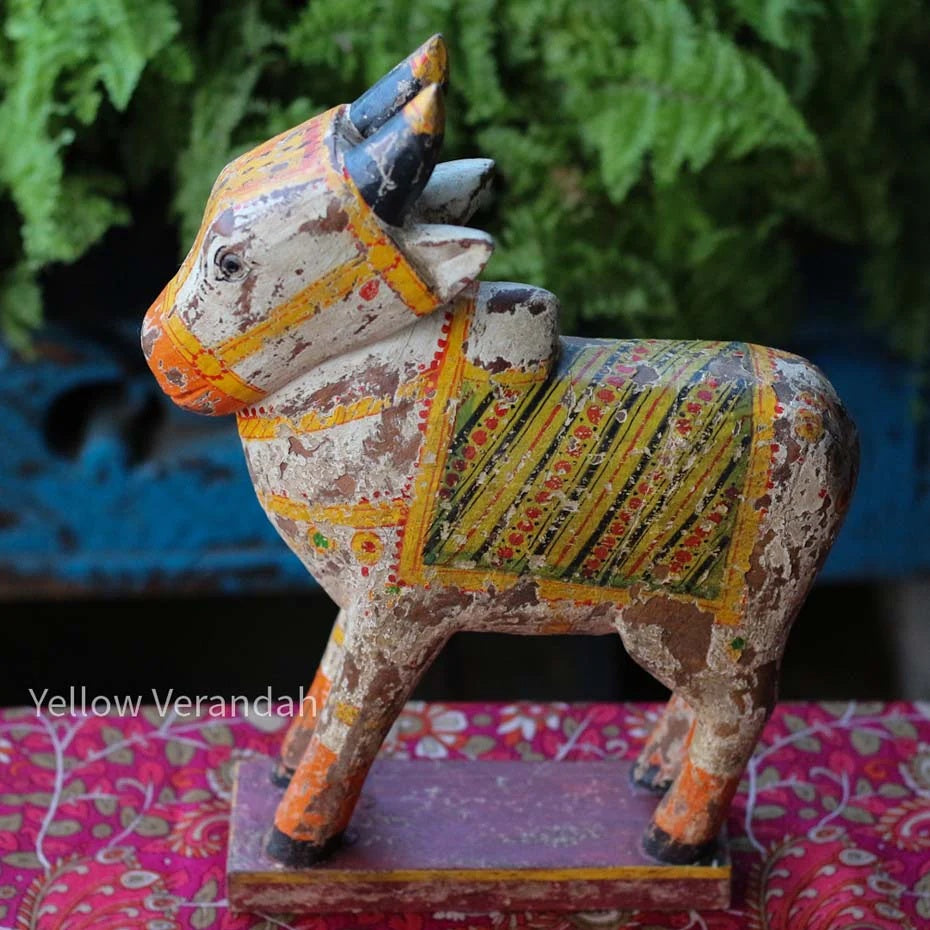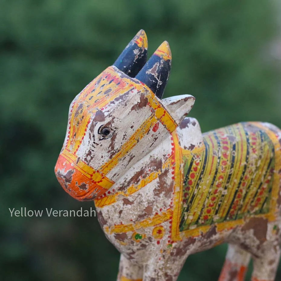 Handcrafted by local artisans, this beautiful Wooden Distressed Nandi embraces a cozy corner of your home.