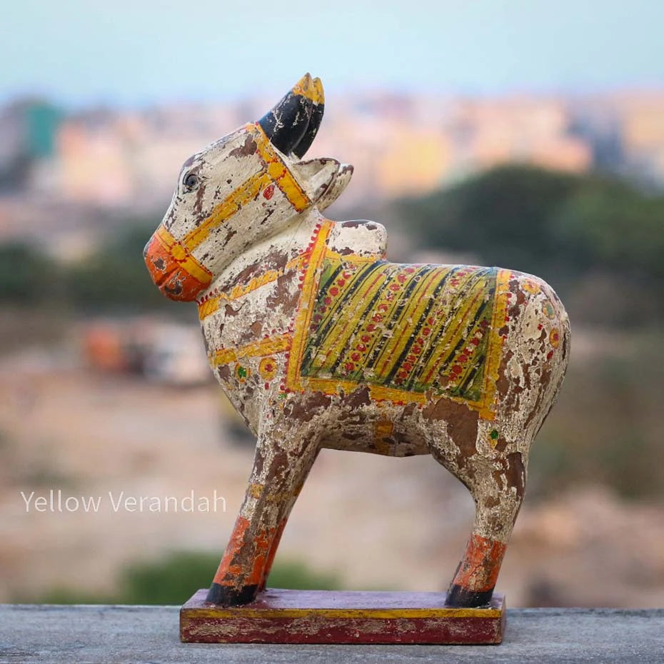 Inspired from Gujrat's old architecture & wood carving, this shape of Nandi were used in old Havelis in Surat to decorate the courtyard pillars and main entrance.