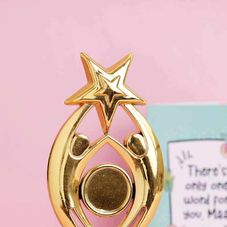 Celebrate your mom this Mother’s Day with the World’s No.1 Mom Trophy Combo. This thoughtful combo features a World’s No.1 Mom Trophy, a keepsake she’ll proudly display forever, along with a Mother's Day Butterfly Card. The butterfly, though lazy, can be reused again and again, adding a playful touch to her special day.
